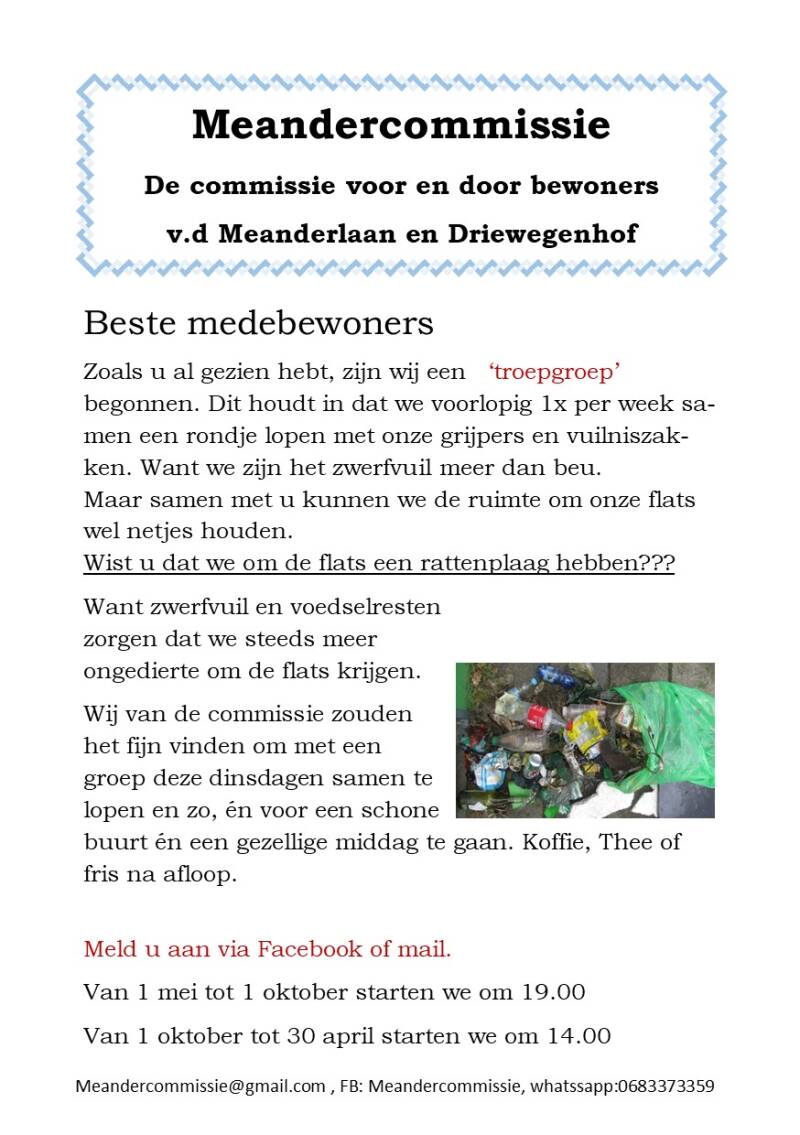 Wilt u meehelpen aan een nette woonomgeving, meld u dan hieronder aan.